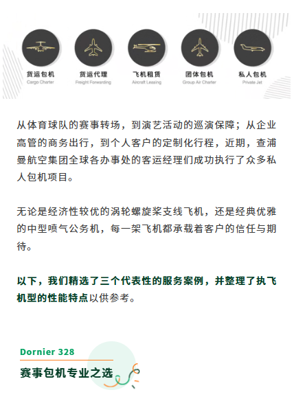 多尼爾 328、飛鴻100、挑戰者605,查浦曼私人包機案例精選