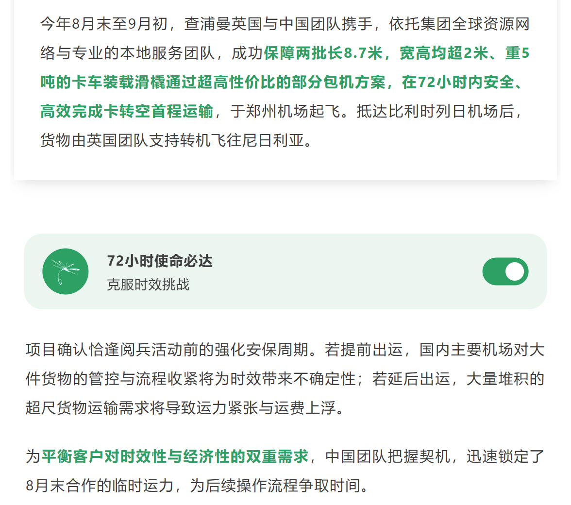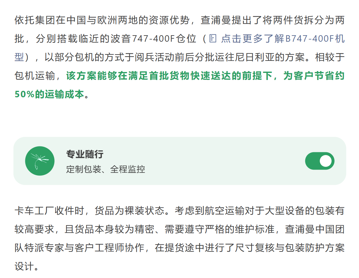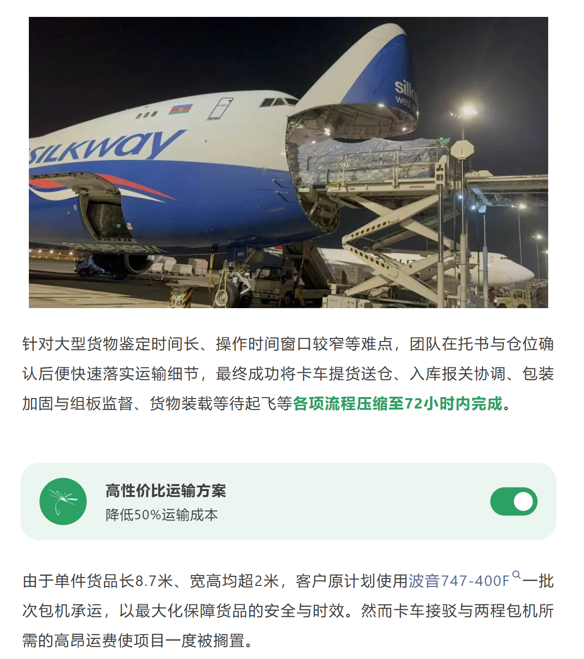 降低50%運(yùn)輸成本,查浦曼完成超尺設(shè)備時(shí)效空運(yùn)任務(wù)